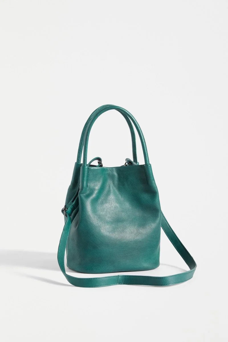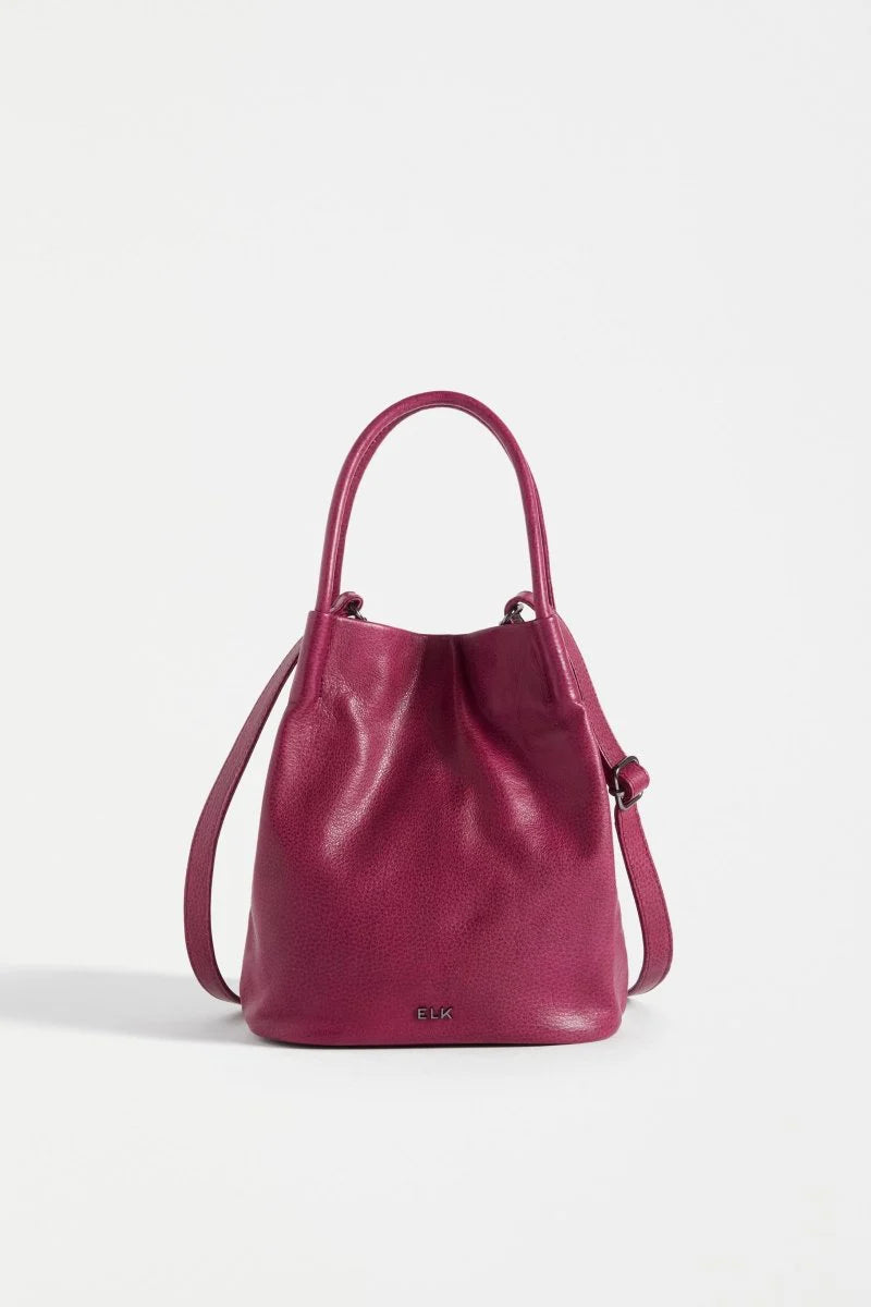 The Elk Mini Orsa bag is a small bucket bag crafted from remnant leather and is their most trusted everyday bag. The relaxed body of the bag is contrasted by its fixed study handles made from leather cord. Additional versatility is given with a removable and adjustable crossbody strap. A hidden magnetic closure is embedded into the opening of the bag. Remnant leathers naturally absorb colour differently throughout textile. This is the nature of the skins and gives each bag a unique finish.