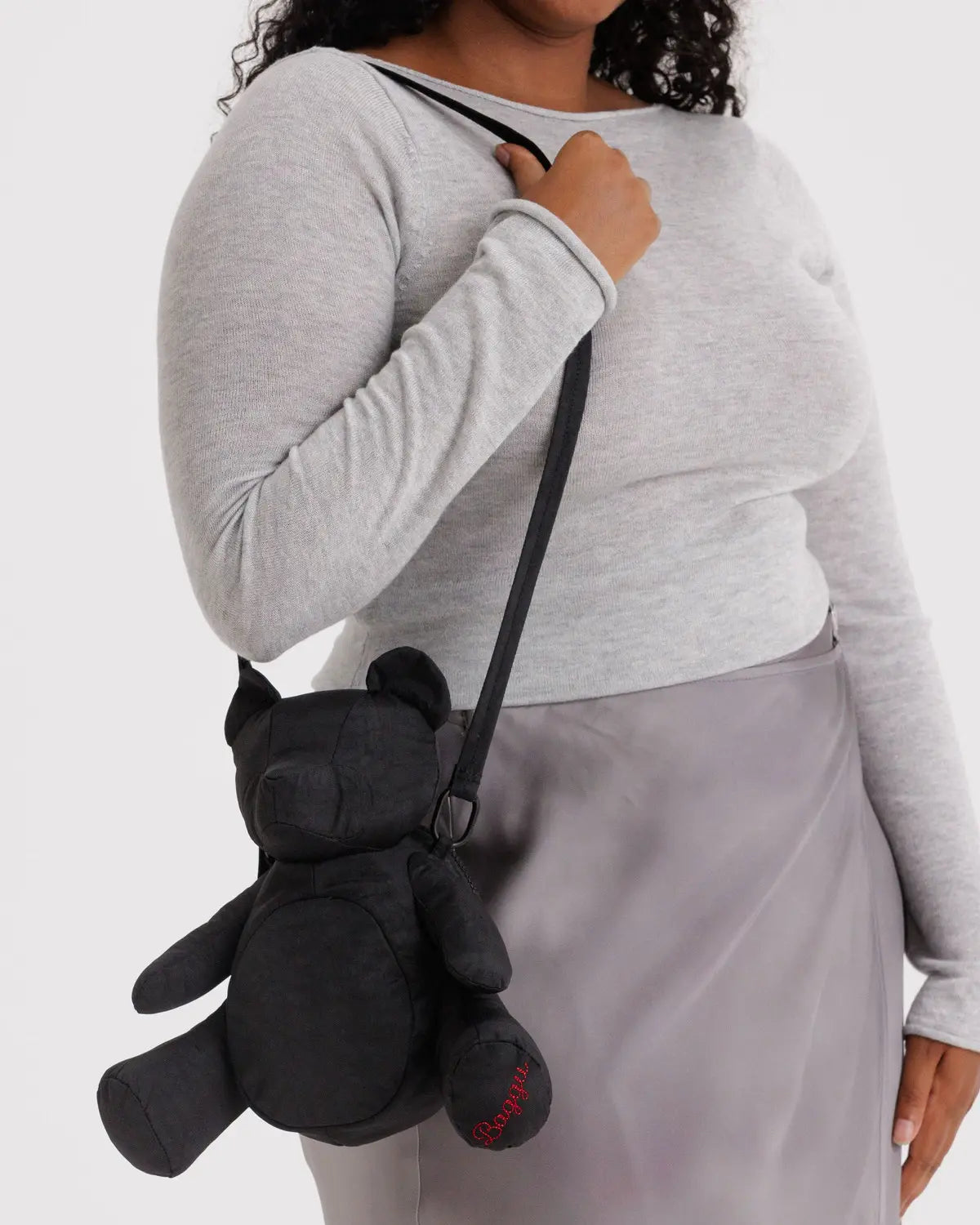 Your emotional support Bear Bag. A removable strap lets you wear this teddy-shaped style as a crossbody. Stuffed head, arms, and legs to hold its shape, back zip compartment to hold your things.