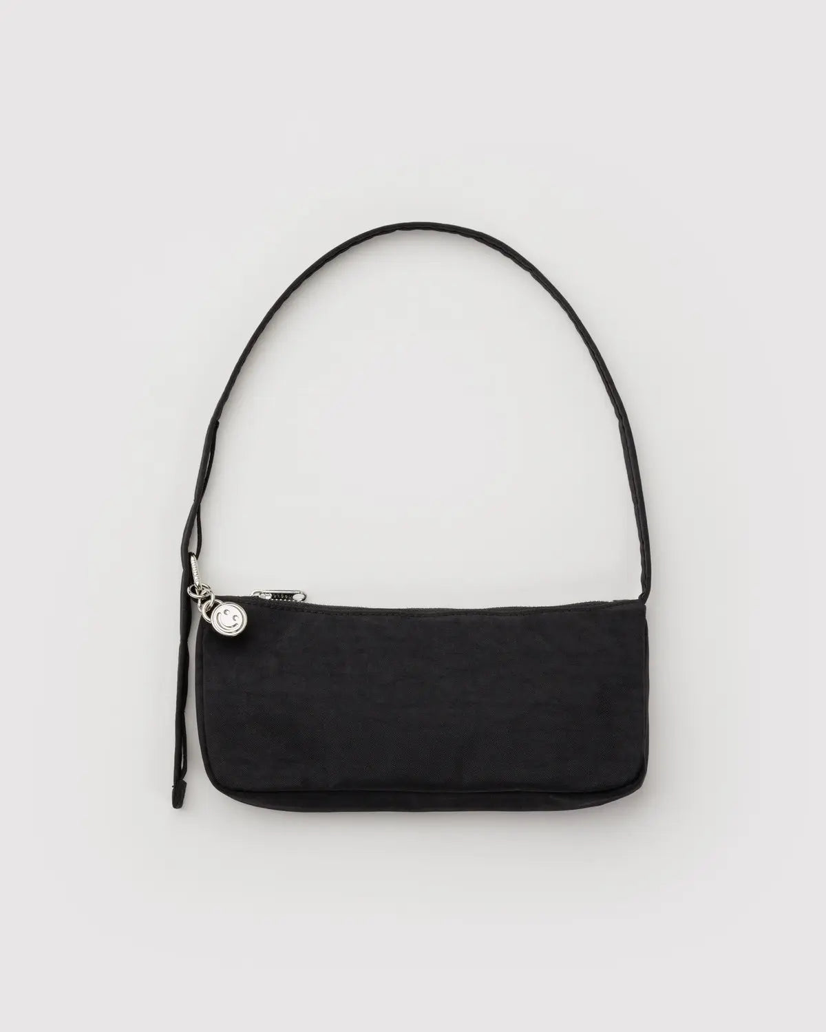 - All metal hardware including charm clip and detachable smiley face charm.