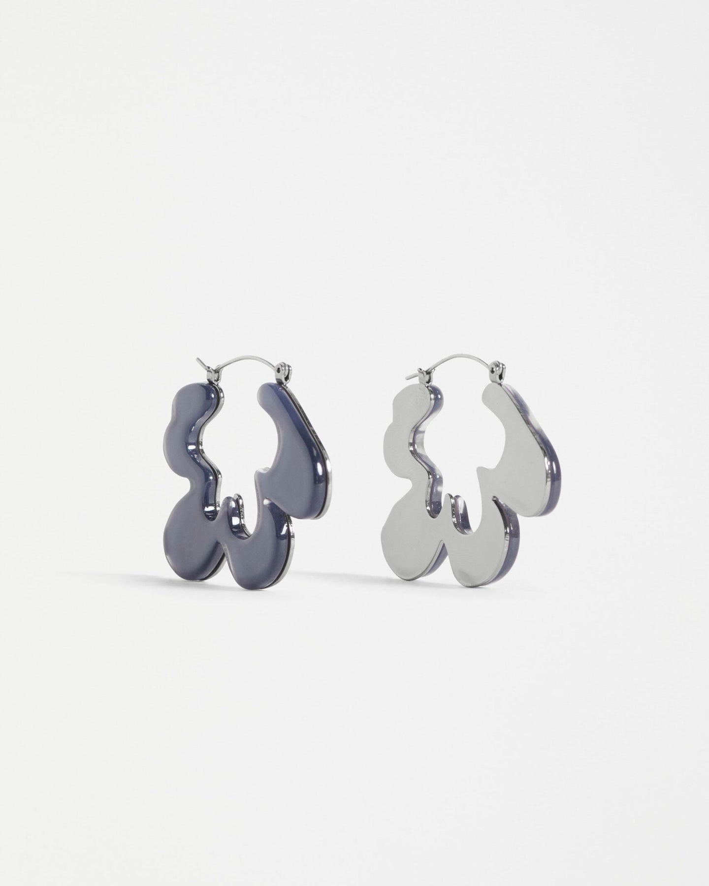 The Lomma Hoop Earrings are playfully shaped mid-sized, closed-end hoops, comprised of abstract floral shapes inspired by our apparel prints. These shapes are cut from acetate with a shiny metal backing. A unique hinged back hoop design adds a touch of whimsy and colour to your outfits.