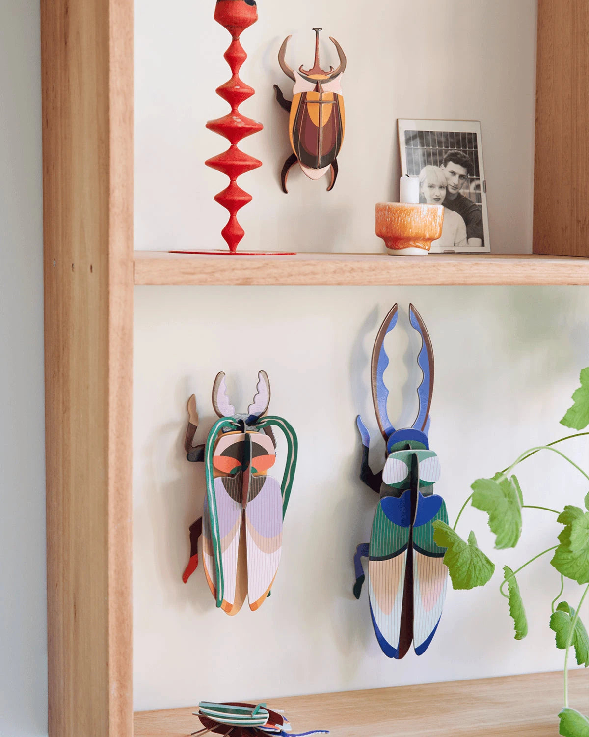 As small as they may be, insects are of great importance for the earth’s vitality. How extraordinary that they can now also tell their story in your home! Printed on recycled cardboard using vegetable ink, these colourful creatures with their bright graphic patterns allow you to add a little beauty to both your home and the world.