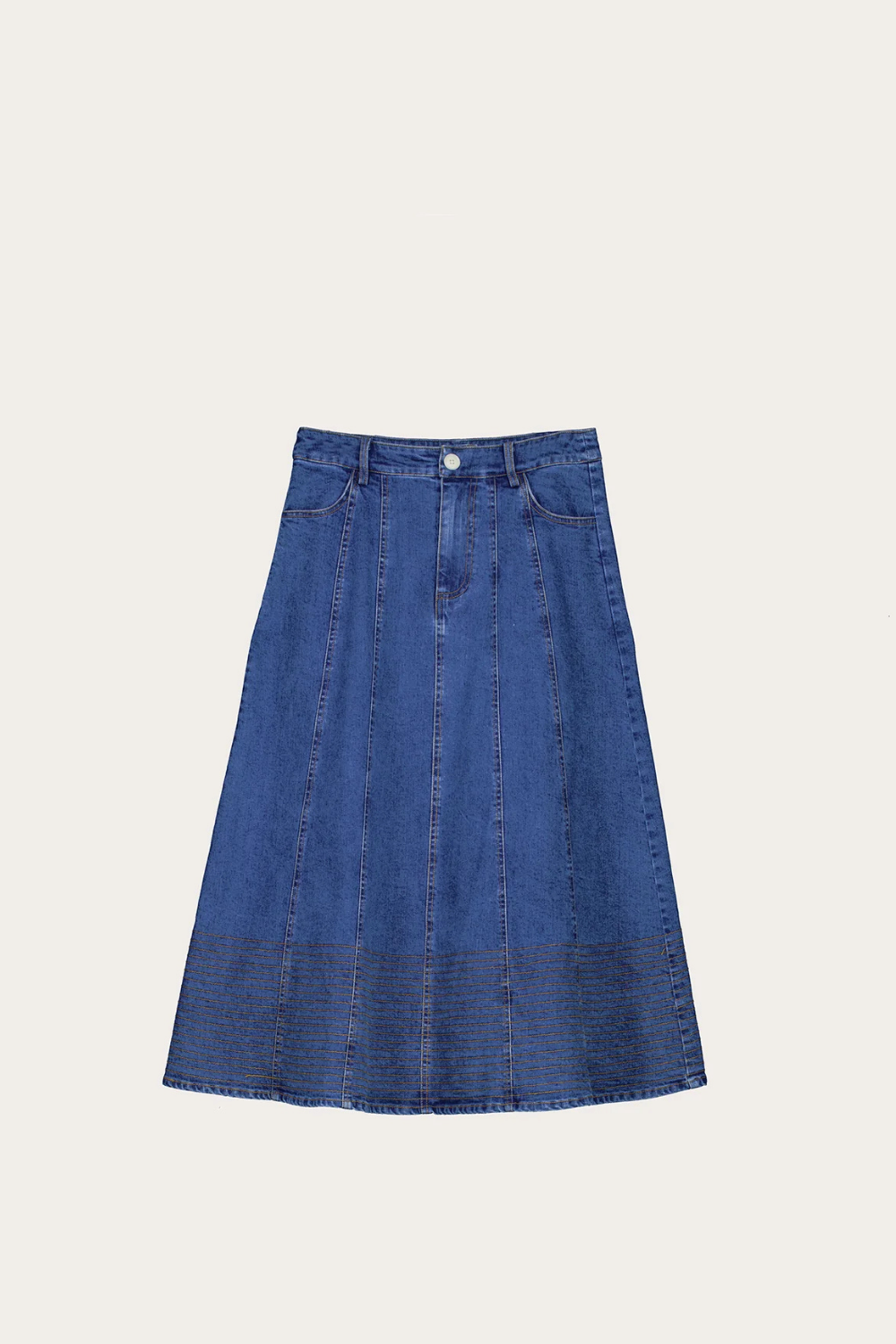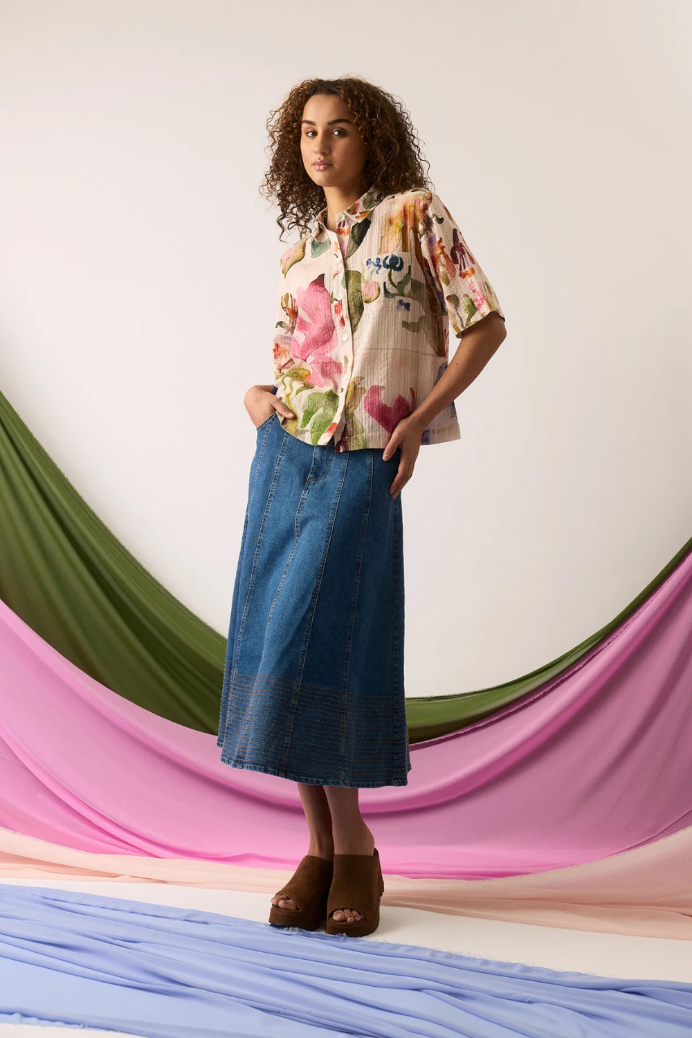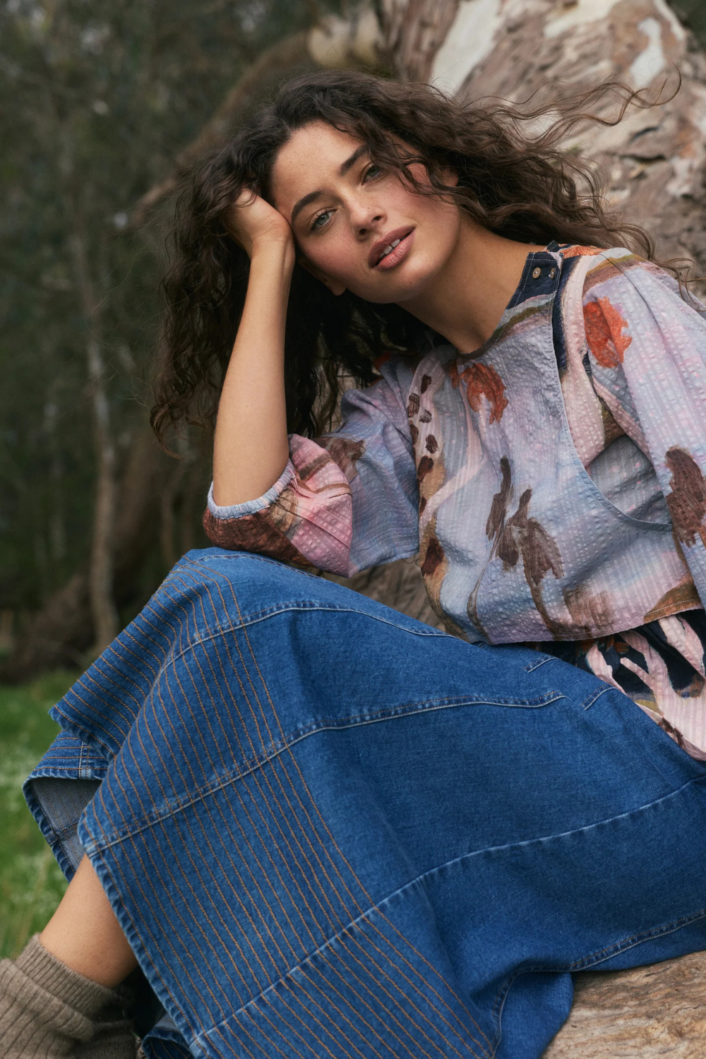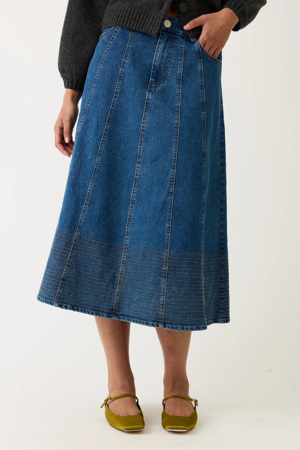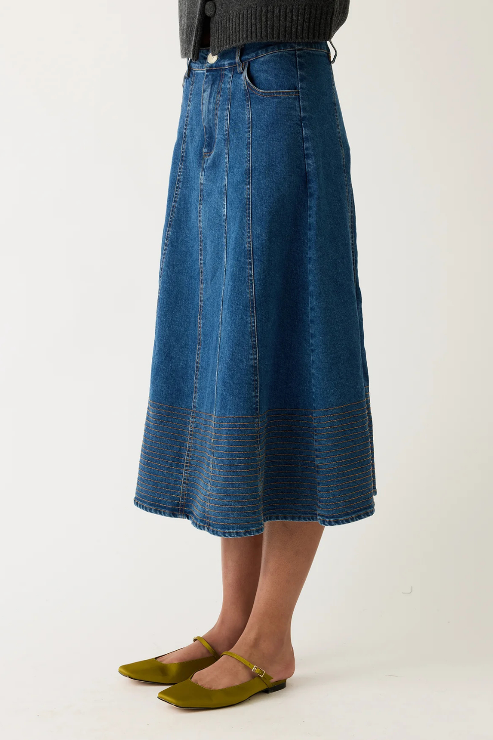 With a striking stitch detail at the hem and featuring flattering panels through the body, the Nina Skirt in denim is so easy to wear.