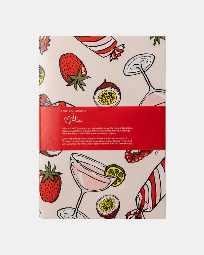 The charming notebooks feature fresh, sunny designs inspired by Australian festive feasts. Illustrated by Adelaide artist Billie Justice Thomson, these notebooks celebrate the seafood, fresh fruit and delicious drinks that made an Australian Christmas unique.