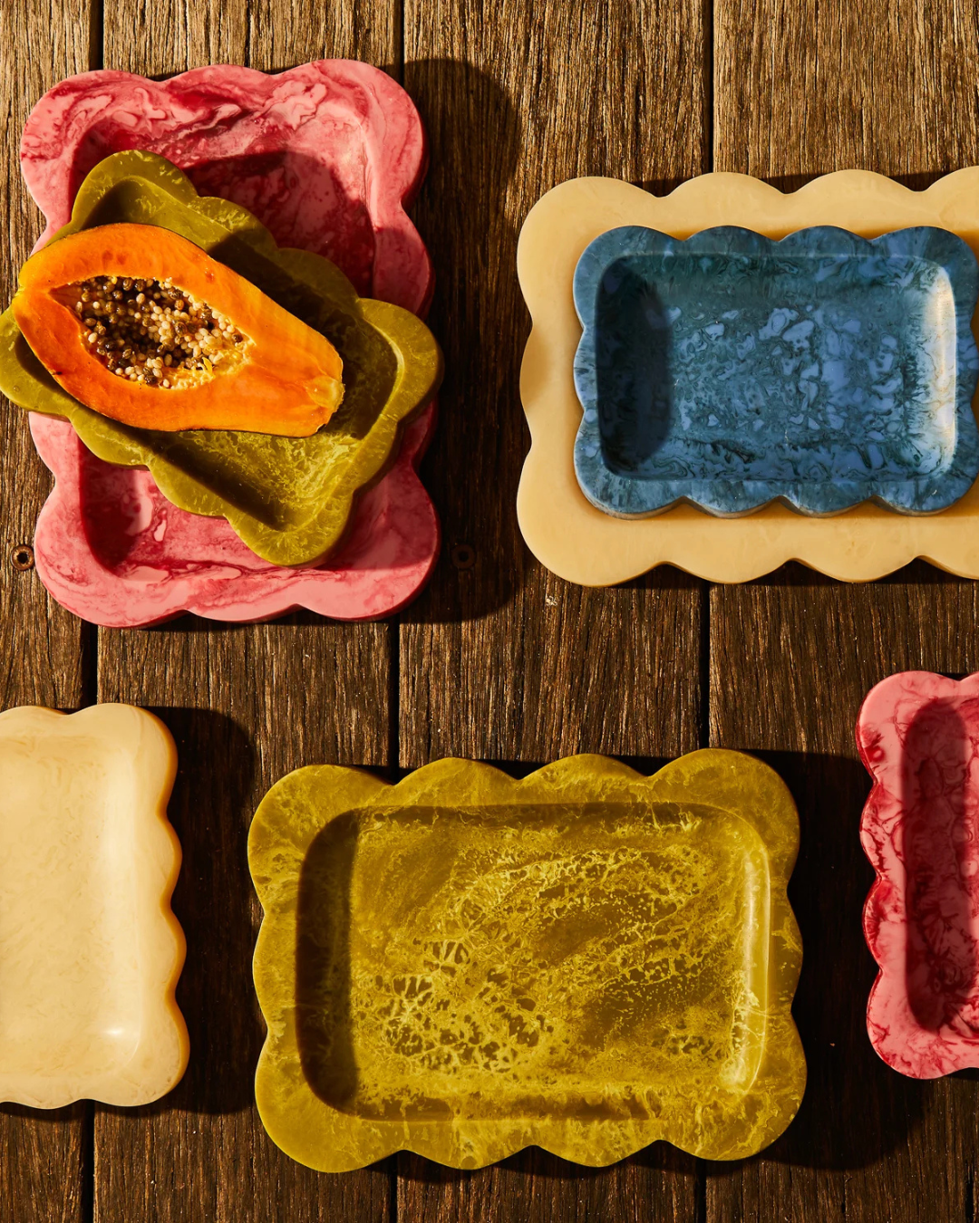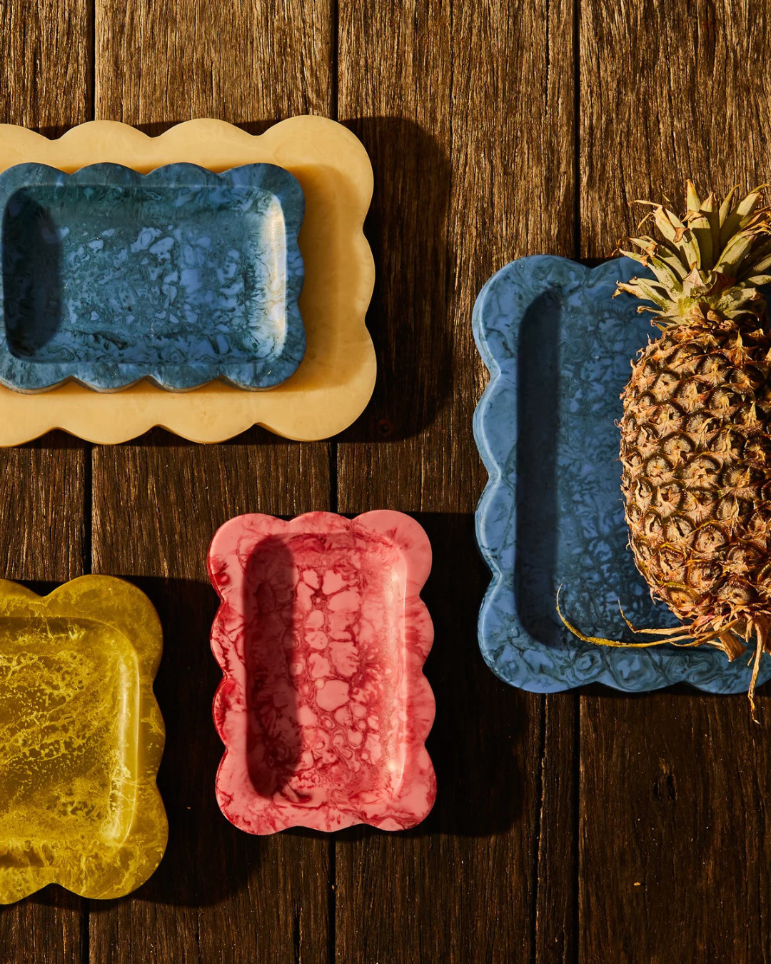 Curved edges and mid-century soul meet everyday living in this elevated resin tray. From bathroom vanity to coffee table, it's crafted to hold everything from fragrances to artful collections. The resin products are individually made by hand - making each piece totally unique.