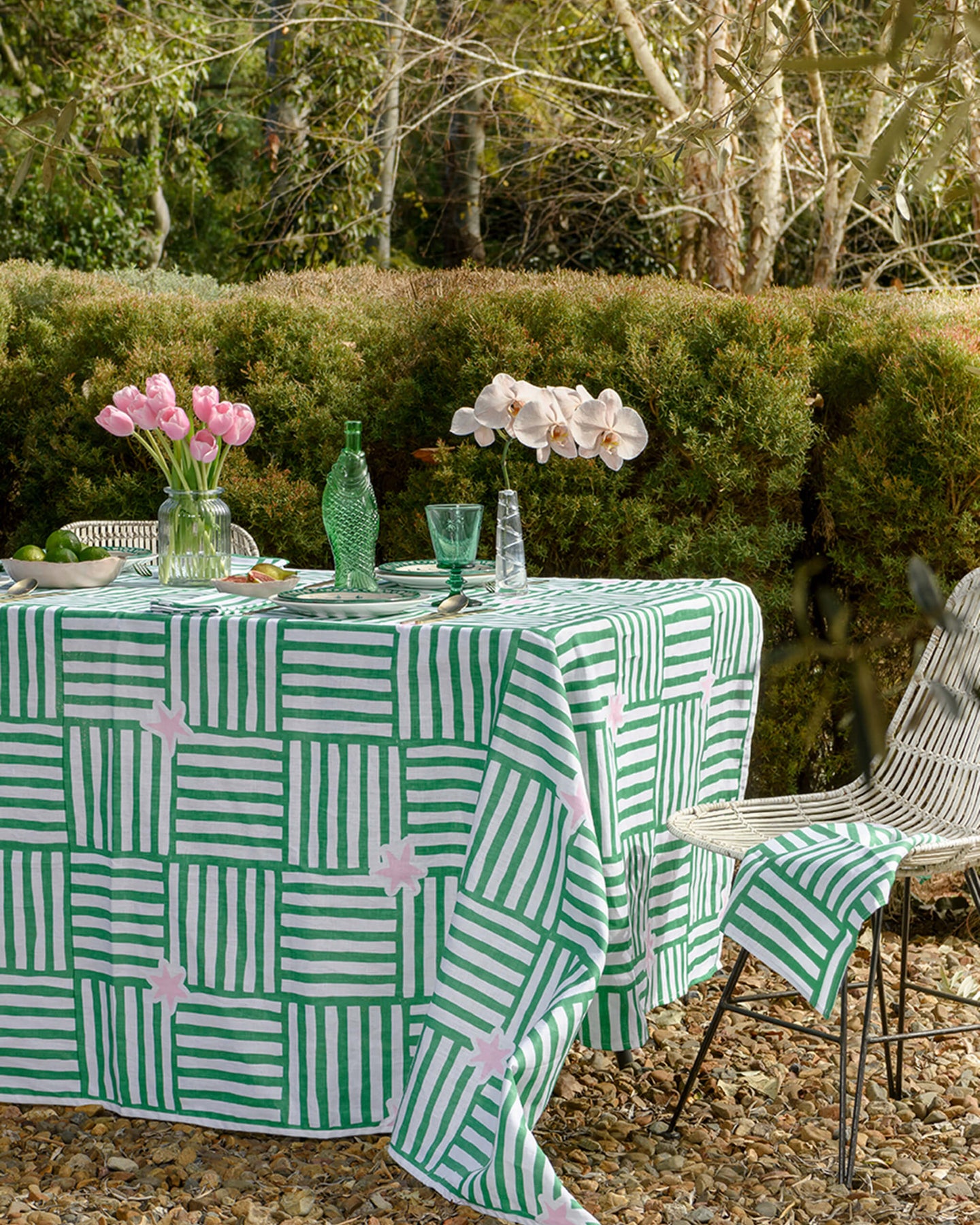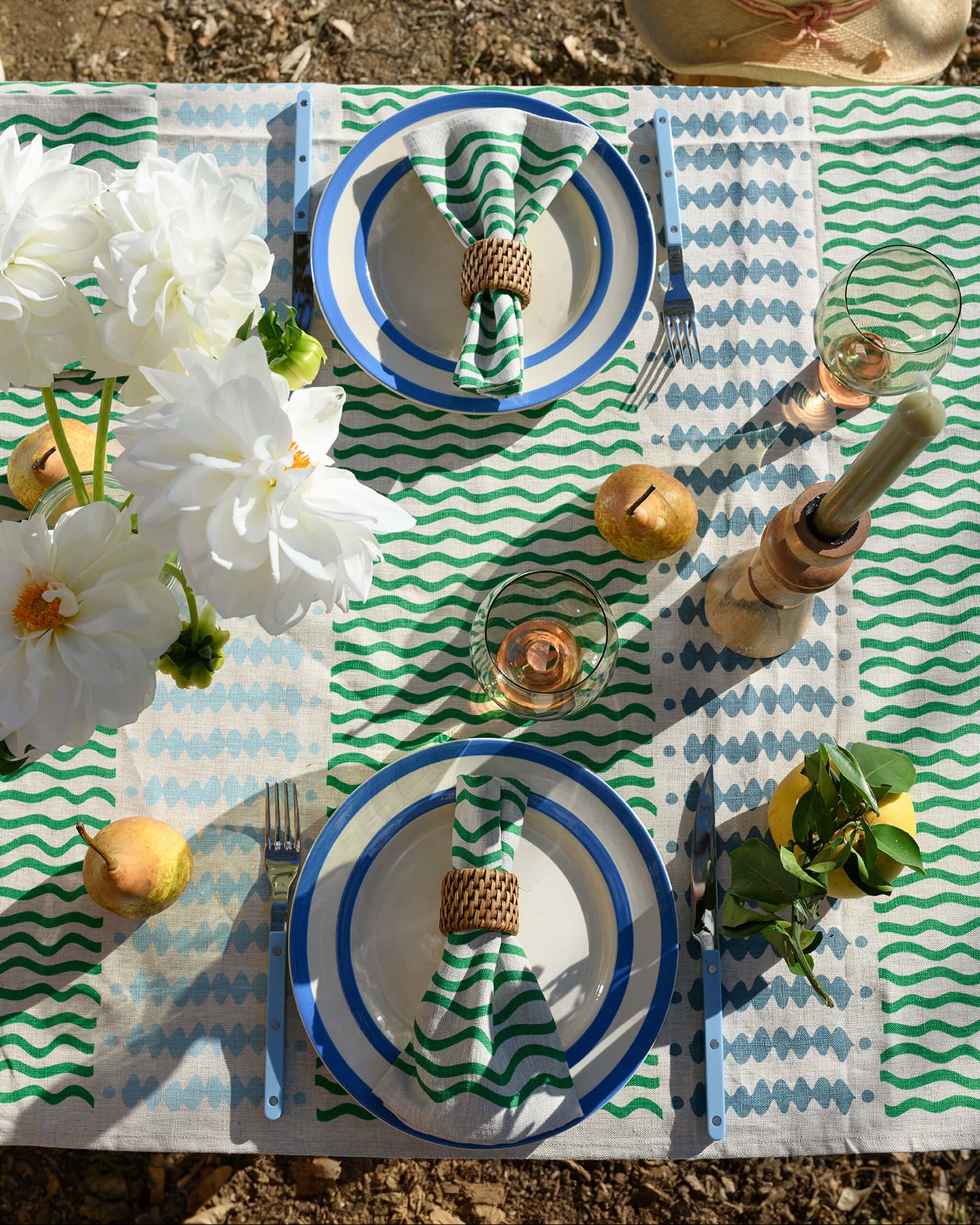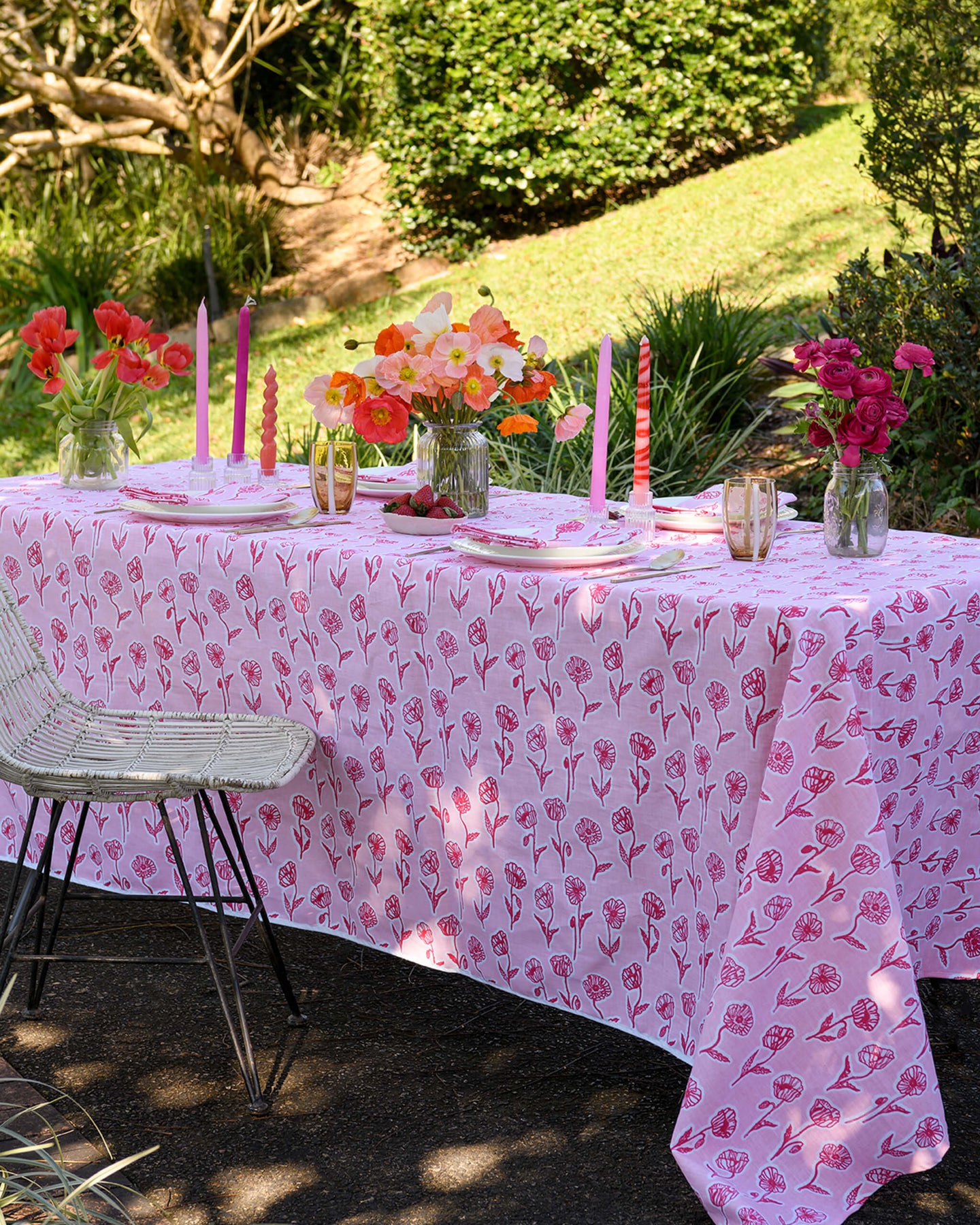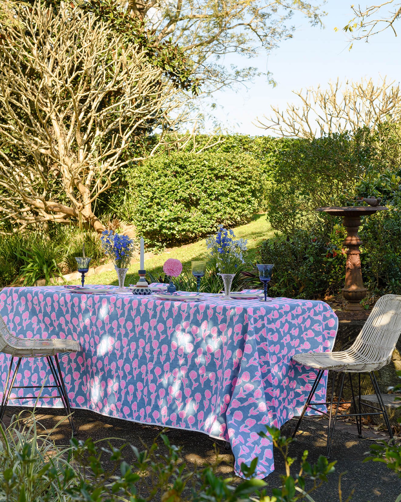 Aqua door Designs drawings are printed on linen. Complete the look with matching napkins. A wonderful statement tablecloth ideal for milestone birthdays and beach settings.