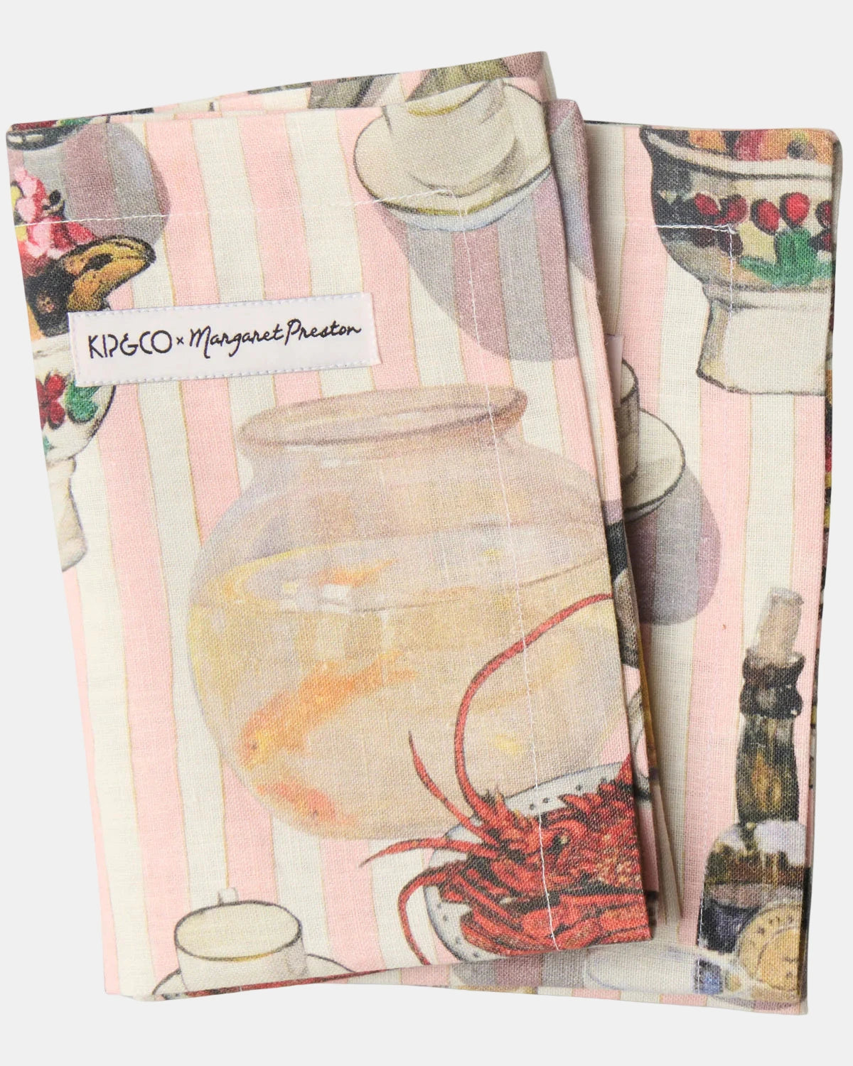 Feature napkins made from printed French flax linen to make your tablescape sing! These napkins are both visual styling items and functional dining aids. Made to wipe faces and keep clean and to be washed and used over and over.