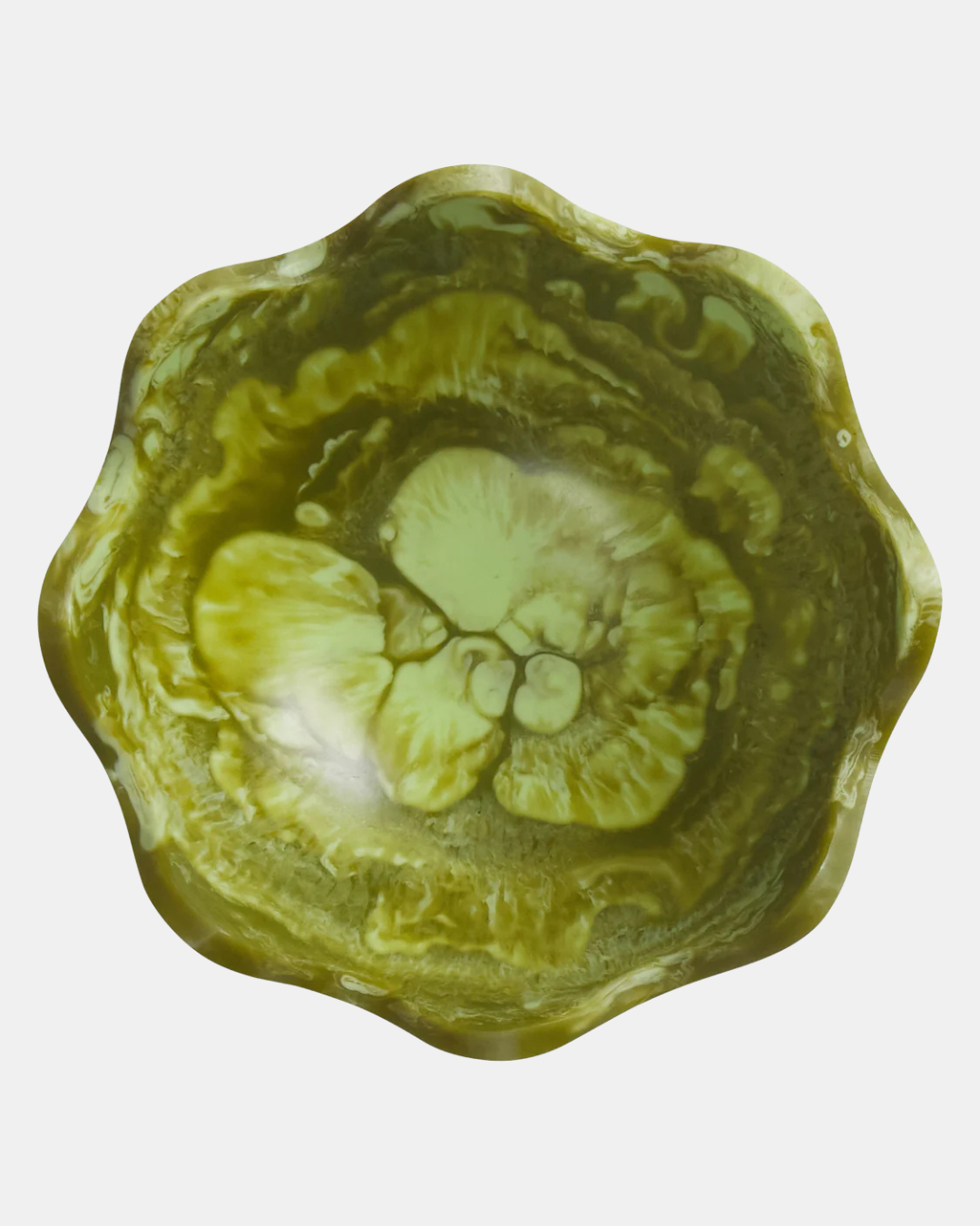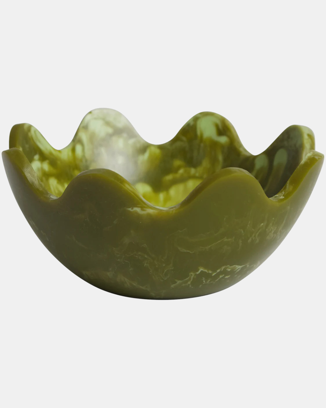 With a nod to mid-century design, this resin bowl fuses form and function via its wavy edges and smooth texture. A versatile companion for your everyday, it looks as good styled on a shelf as it does on the dining table. Crafted to hold what you love — good food, accessories or daily essentials. The resin products are individually made by hand - making each piece totally unique.