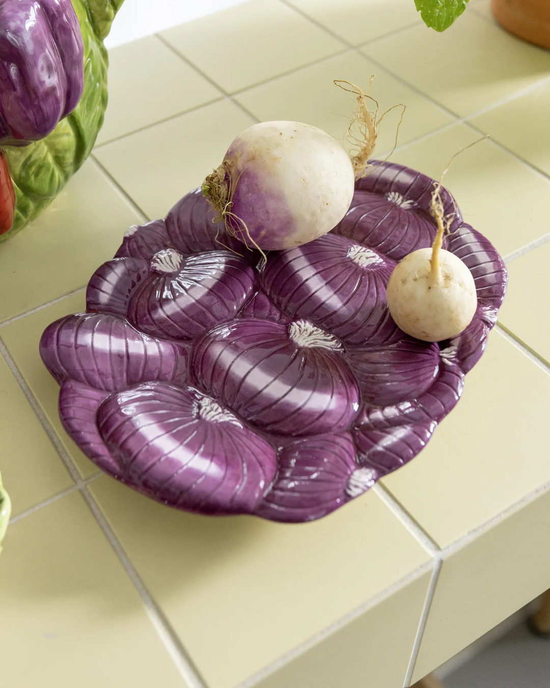 This playfully classic serving plate is inspired by traditional designs, featuring a lifelike onion pattern that adds a touch of charm and character. Perfect for serving salads, snacks, or side dishes, it’s both functional and decorative. A true eye-catcher for any kitchen or dining setting.